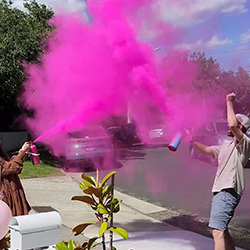 Reveal the surprise in vibrant style with colourful powder cannons, creating an emotional, photo-worthy moment filled with joy and excitement.
